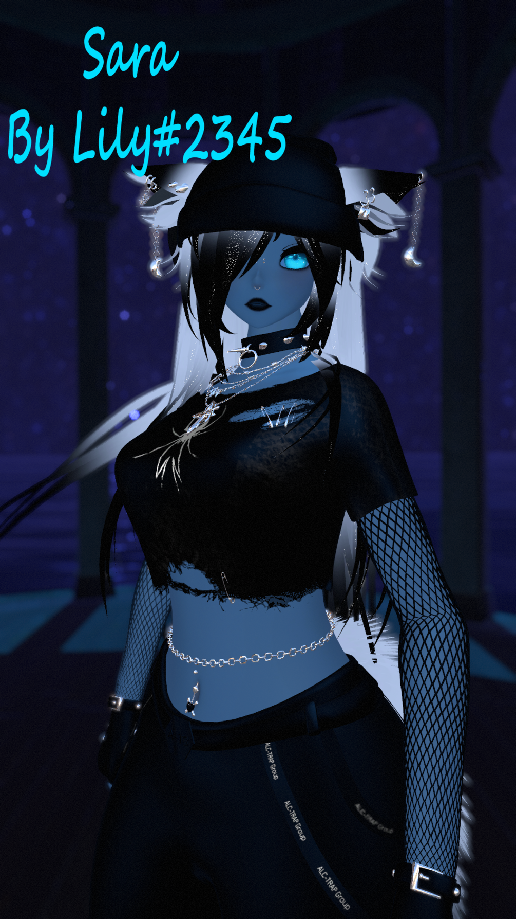 Sara: Shirt ~ Pants ~ Shoes ~ Ears ~ Tail ~ Gloves ~ Fishnet ~ Face piercing ~ Bellybutton piercing ~ Choker ~ Necklace ~ Beanie ~ Chain on belly ~ Hair colors: BlackWhite/Grey/White/Black/Brown/Blonde/Green/Red/Blue/Purple ~ Clothes Color: Black/White ~ Metal colors: Silver/Gold ~ Hair length: Long/Short ~ Eye Hue Shift