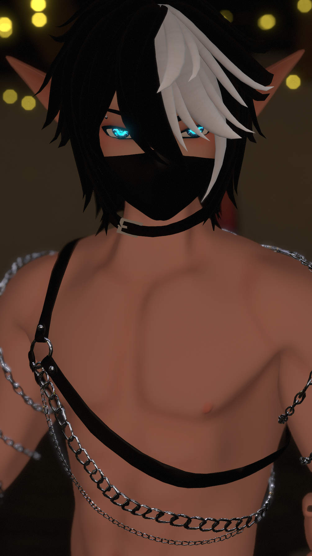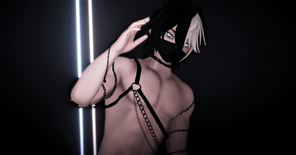 Toggles: Top/Pants/Harness/Shoes/Sleeves/Choker/Mask/BunnyHat/ElfEars/Chains/HueShift for Eyes and Hair