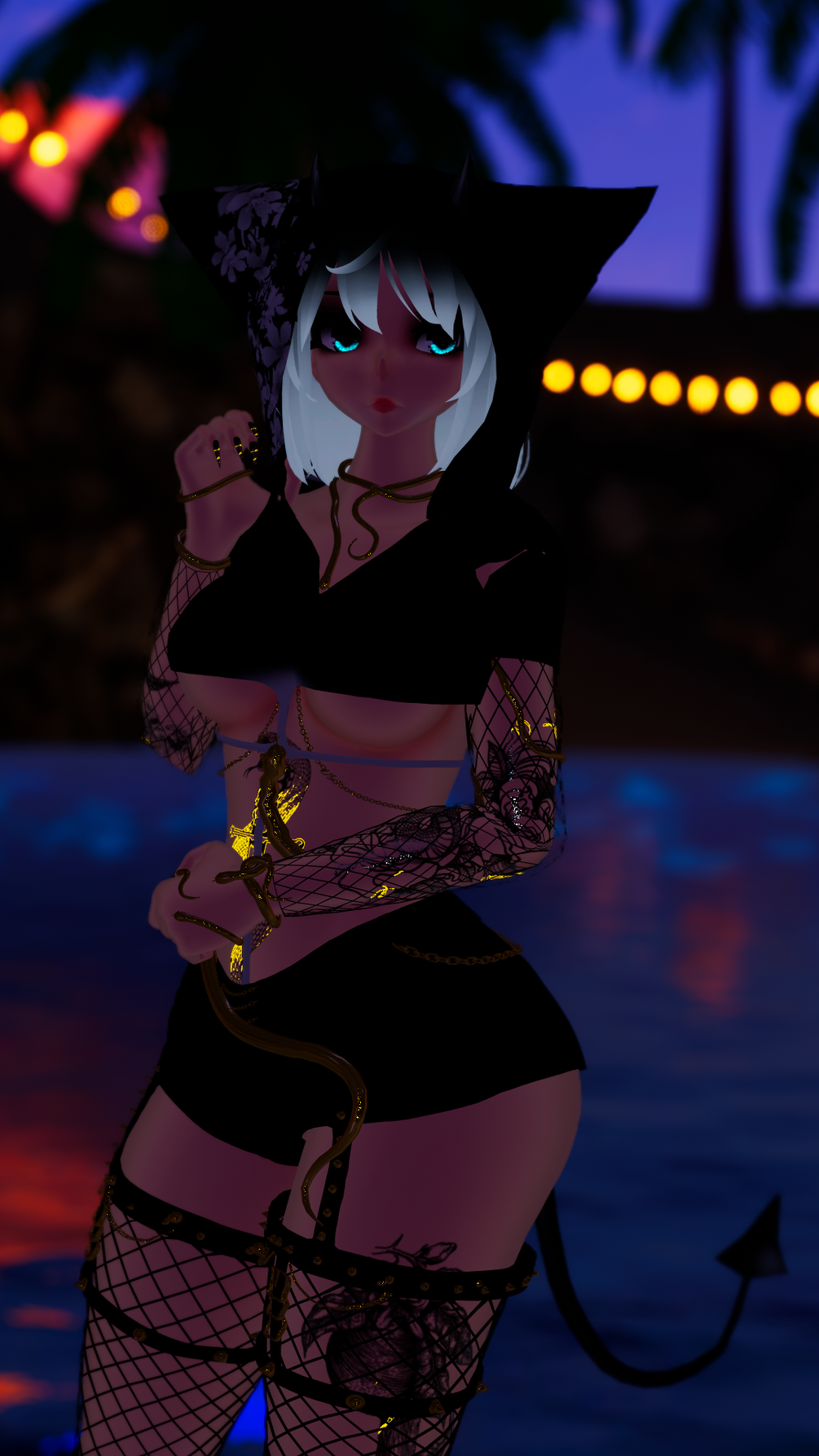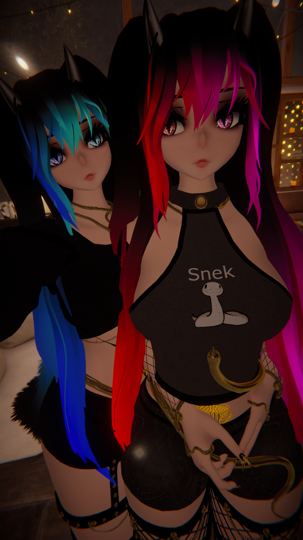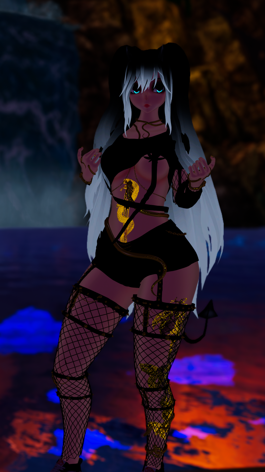 Horns/Deviltail/WolfTail/Hair1/Hair2/Eyeswitch/DissolveToggle/Black-white Clothing toggle/HueShift/Springjoint/