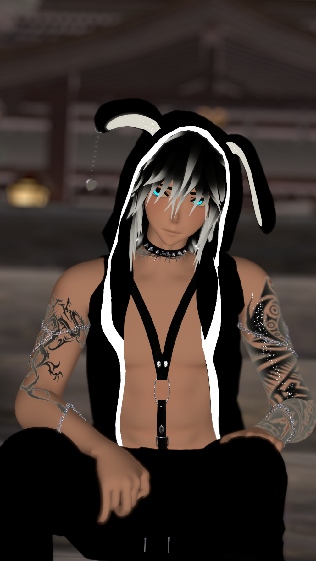 Toggles: Hoodie/Pants/Shoes/Bunnyears/Other Ears/Choker/Chains on arms/Hanging rabbit feet/Harness/AudioLink (color changes on it)